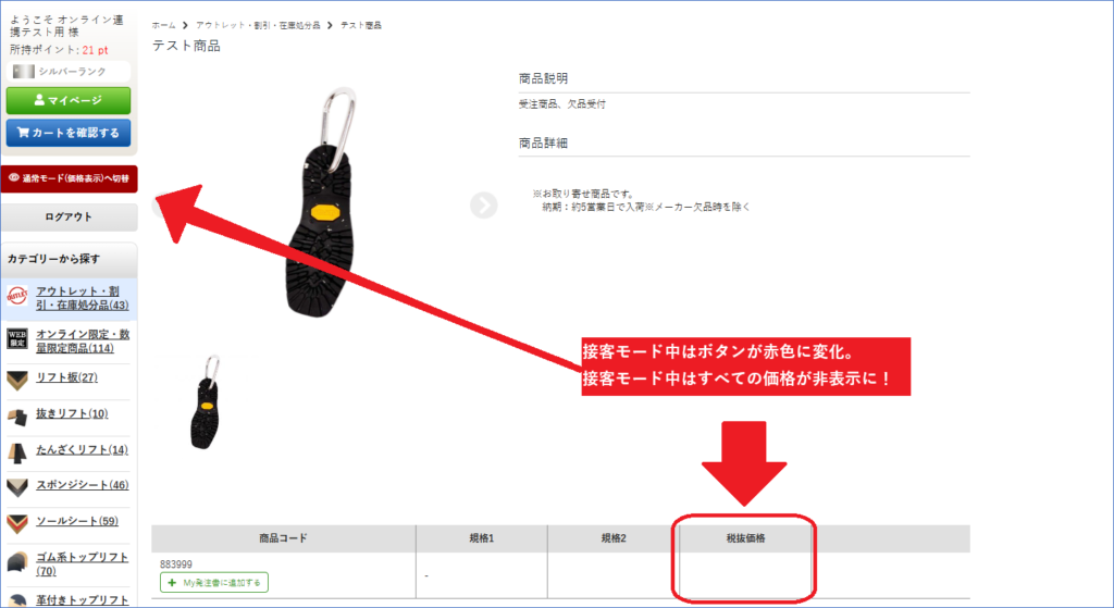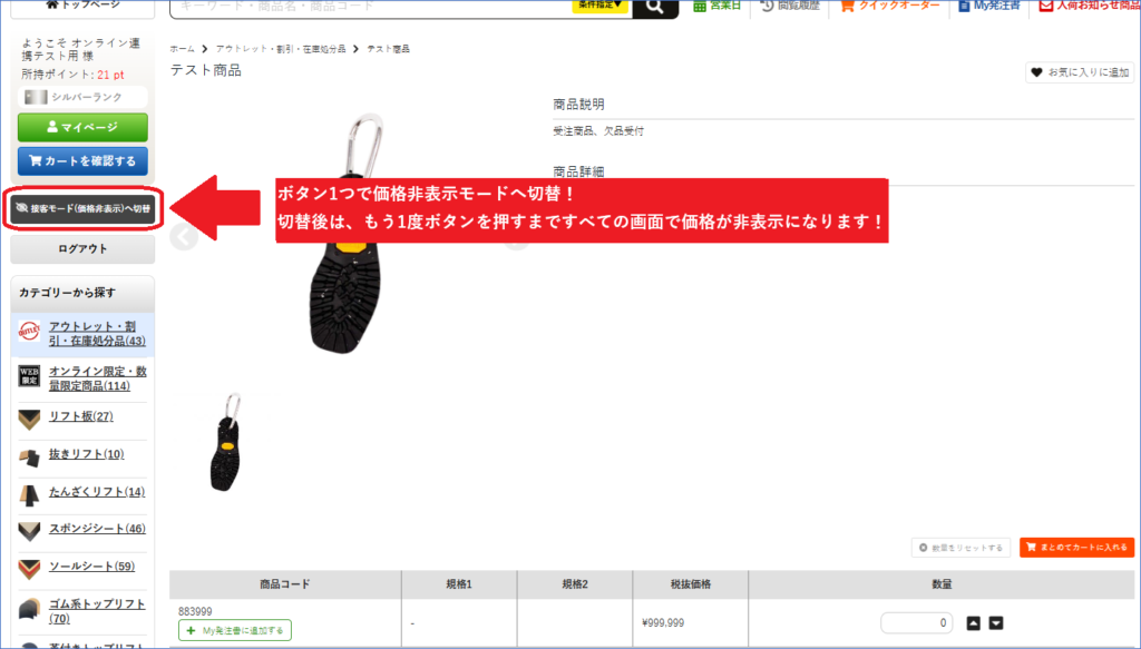 「価格非表示(接客モード)」機能