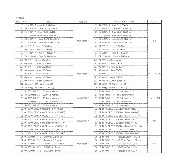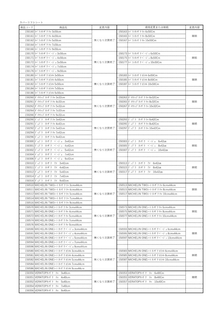 ■サイズ変更・販売終了の内容